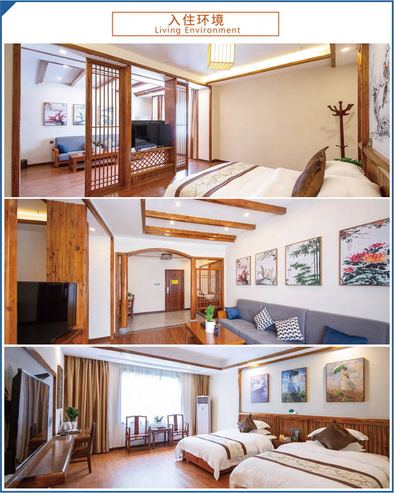這里設(shè)施完備,環(huán)境優(yōu)美。占地70余畝,建筑面積23000余平方米,由多座湘西民族風(fēng)格的園林建筑群組成。院外依山傍水,院內(nèi)綠樹成蔭,環(huán)境優(yōu)美怡人,F(xiàn)有客房4棟,各類客房279間,中西餐廳可滿足500人同時(shí)就餐。大小多功能會(huì)議室、棋牌室、健身房、藍(lán)球場、羽毛球場等設(shè)施均有配備。