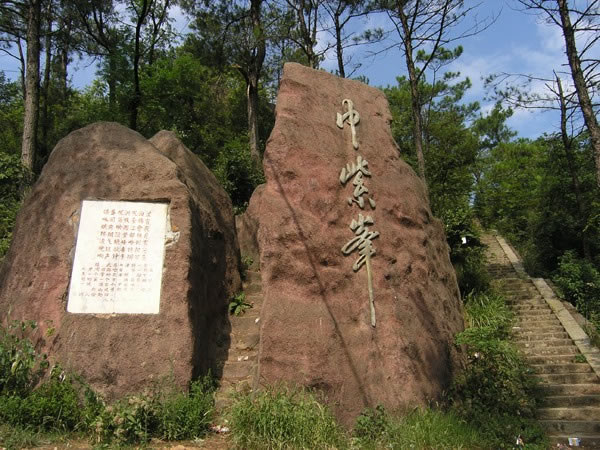 墮金石 位于金紫峰西向,兩者遙望相對(duì),近在咫尺。傳說天上飛來一塊大金石,墮于峰尖,故名墮金石。石為花崗巖體,拙灼古樸。
