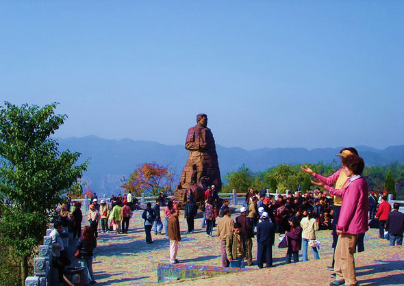 坐落在1200米的千層巖左側。公園內(nèi),屹立在“云青巖”上的賀龍銅像與大自然連為一體,形成獨特的藝術風格。這是我國近百年塑造的最大的一尊銅像。