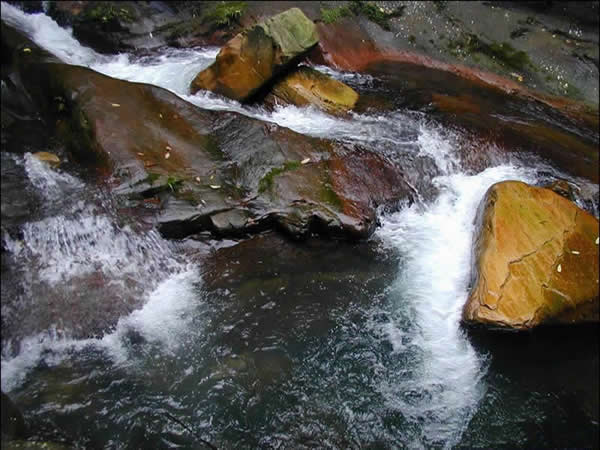 紫草潭位于張家界國家森林公園內,金鞭溪與砂刀溝匯合處。潭谷為紫紅色砂巖,因流水經多次沖刷成槽狀,而名為紫草潭。潭長約8米,寬約2米,深2米。潭水清澈見底,加之因奇峰、綠樹、紫石映入潭底,斑駁陸離,水光鱗鱗,綠影搖曳,極為自然和諧。潭上小橋為一塊完整的天然巨石,三米多長,二米寬。