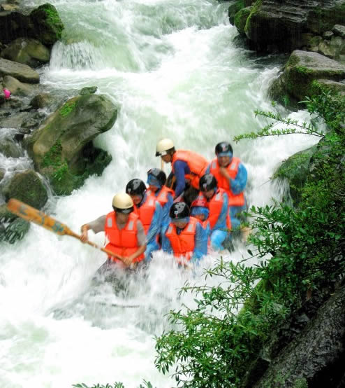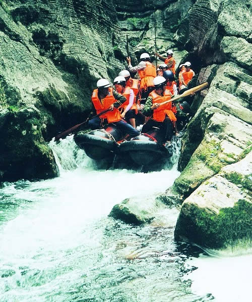西門峽漂流全程6公里,屬萬溶江流域,它發(fā)源于兩頭羊自然保護區(qū)的群山之中;沿途危崖夾峙,樹木蔥榮,水質清澈、急流、險灘星落棋布。共有虎跳澗、白龍灘、臥龍灘、青龍峽、鬼見愁、龍王灘等急流險灘30余個。其中以青龍灘最為著名,它全長400米,落差20余米。它和龍王灘一道堪稱國內漂流之經(jīng)典。