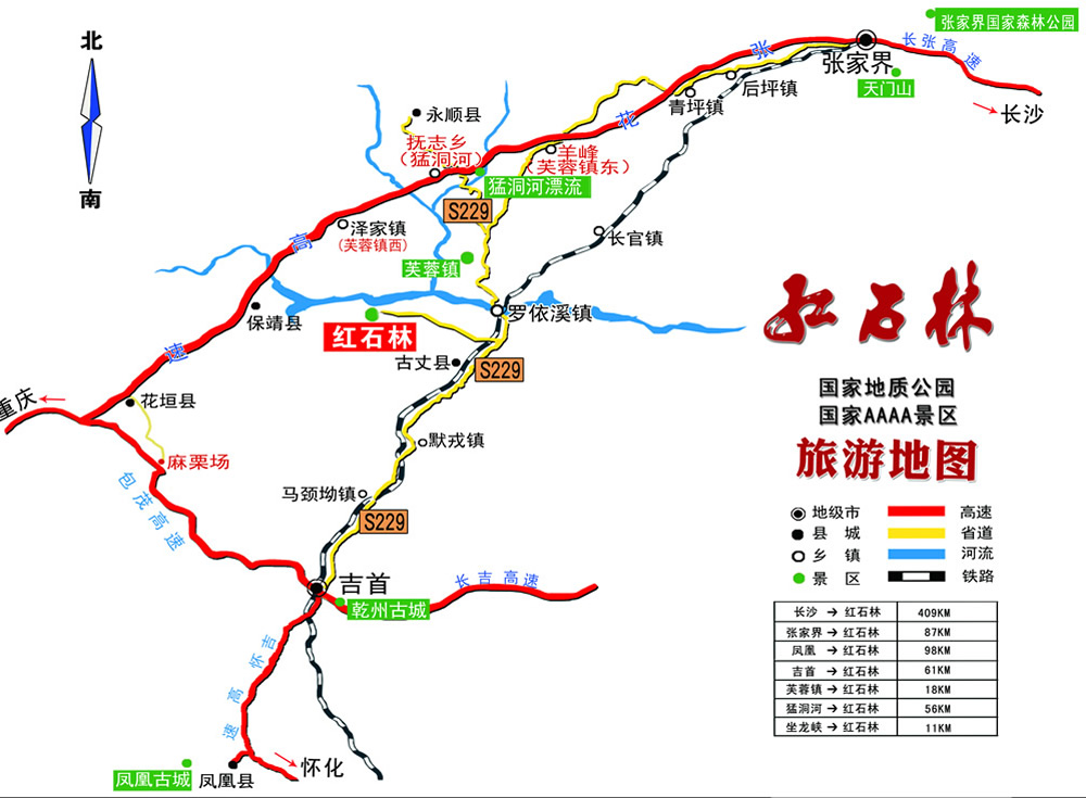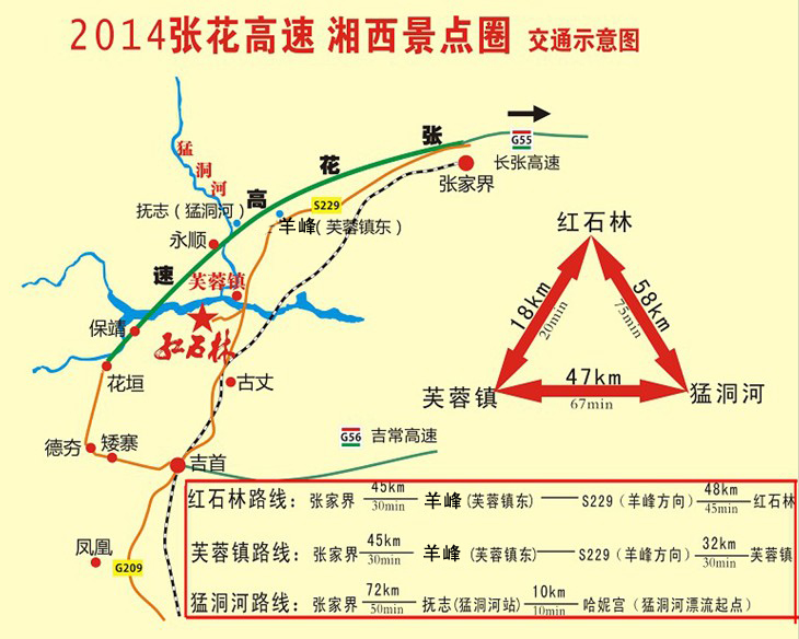 張花高速湘西景點圈交通示意圖