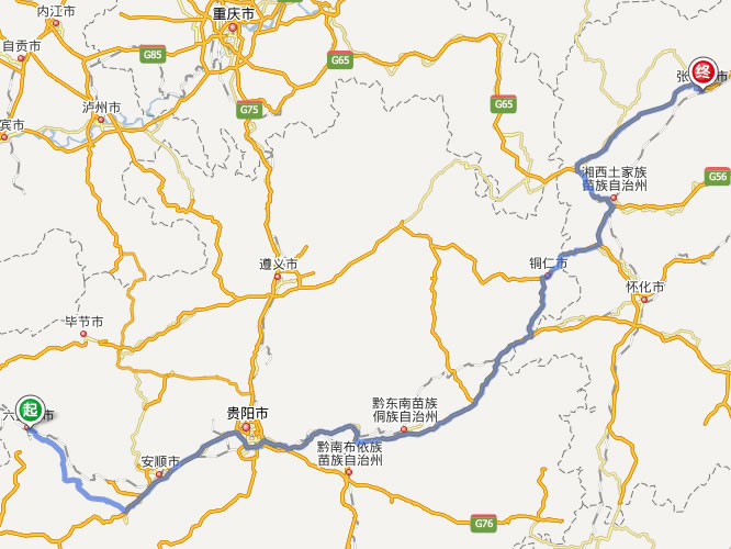 六盤水去張家界自駕車自助游線路圖全程高速):