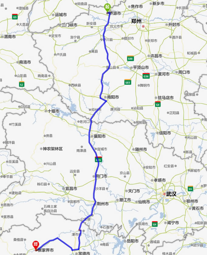 濟源去張家界自駕車自助游線路圖全程高速):
