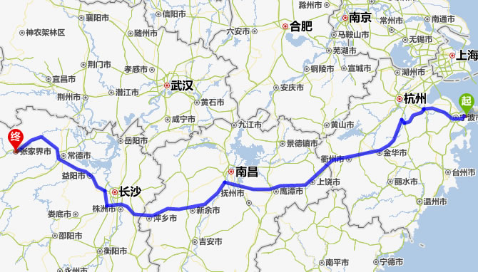 現(xiàn)在位置:張家界旅行社->交通指南->自駕車路線 -> 北侖到張家界旅游自駕車線路,北侖去張家界自己開車要多長時間,有多少公里