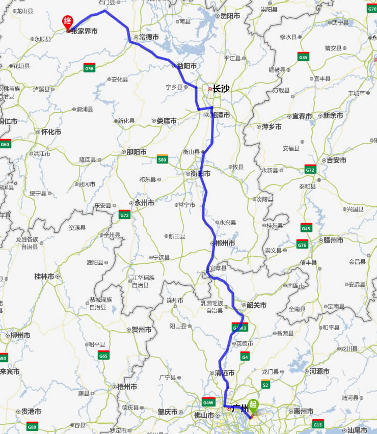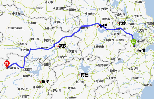 德清去張家界自駕車自助游線路圖全程高速):