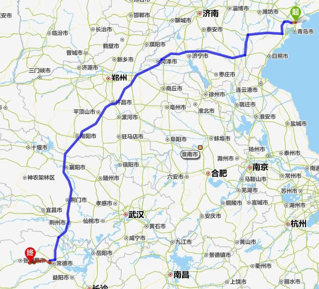 即墨去張家界自駕車自助游線路圖全程高速):