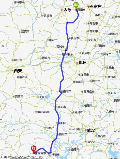 陽(yáng)泉去張家界自駕車(chē)自助游線路圖全程高速):