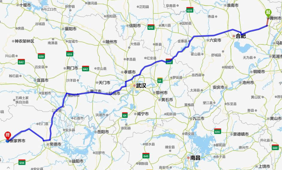 滁州去張家界自駕車(chē)自助游線路圖全程高速):